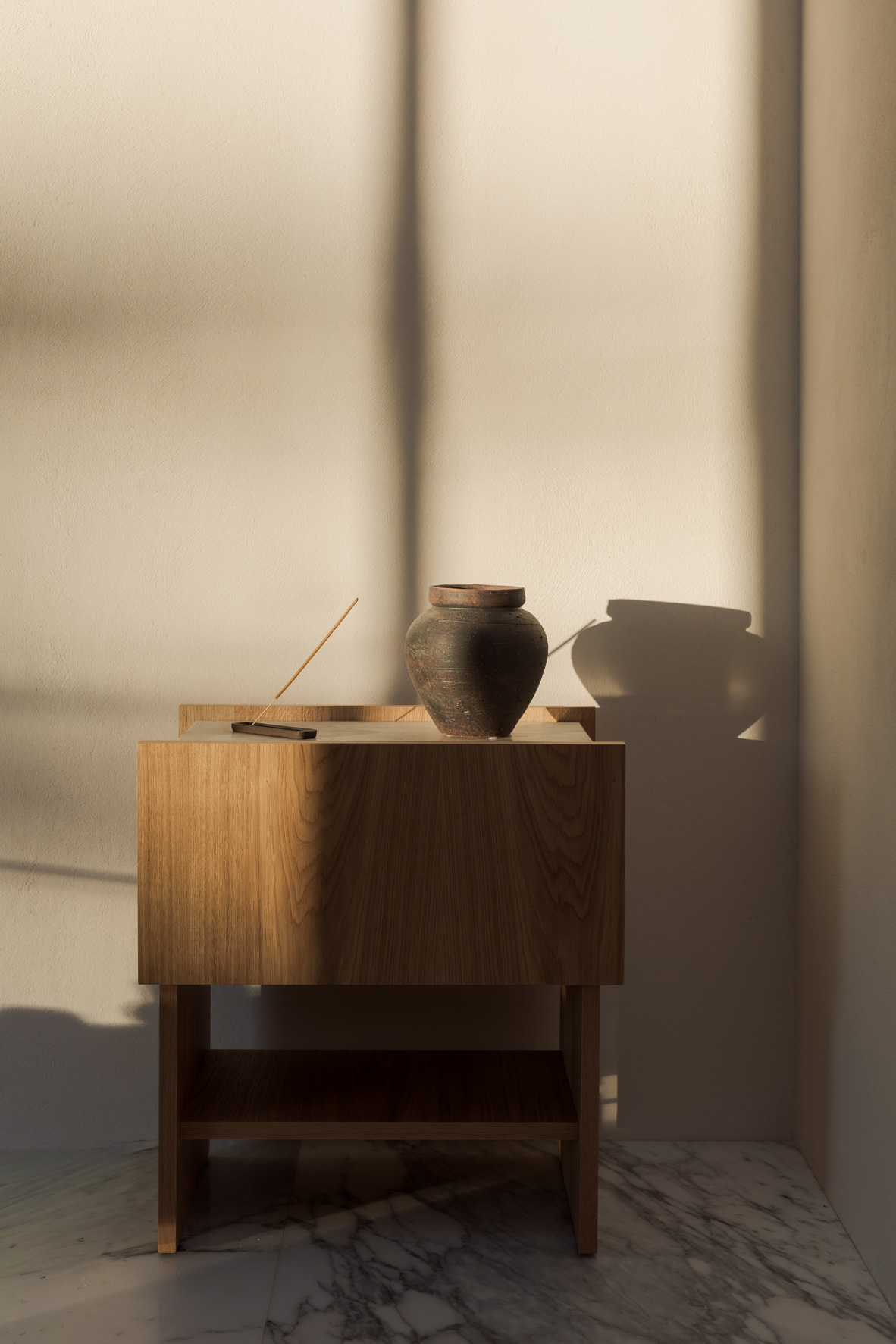 Stolik nocny NOTO z serii LINEE to elegancki i funkcjonalny mebel do sypialni. Poręczna szuflada i dodatkowa półka zapewniają miejsce do przechowywania. Podobnie jak w przypadku konsoli ORIA, sercem mebla jest piękny blat wykonany z naturalnego kamienia: wyjątkowego, prążkowanego trawertynu lub eleganckiego kwarcytu Taj Mahal o wspaniałym satynowym wykończeniu.
